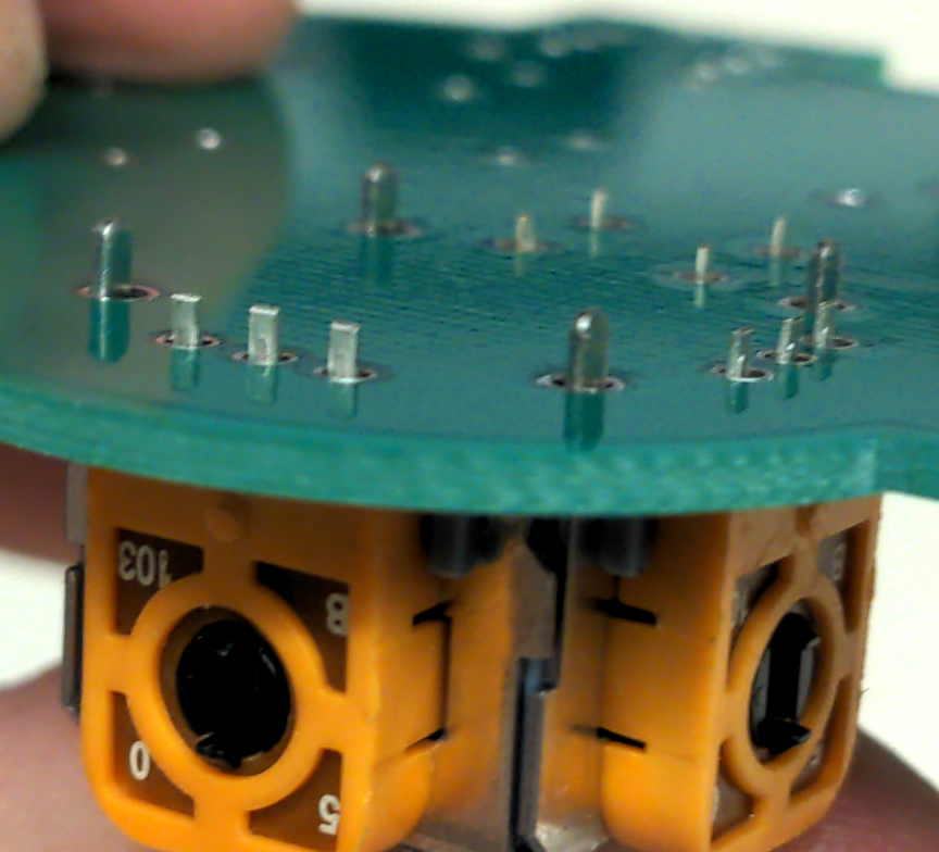 for a total of 14 pins per joystick. All of these should be clearly visible before you start soldering, like so: