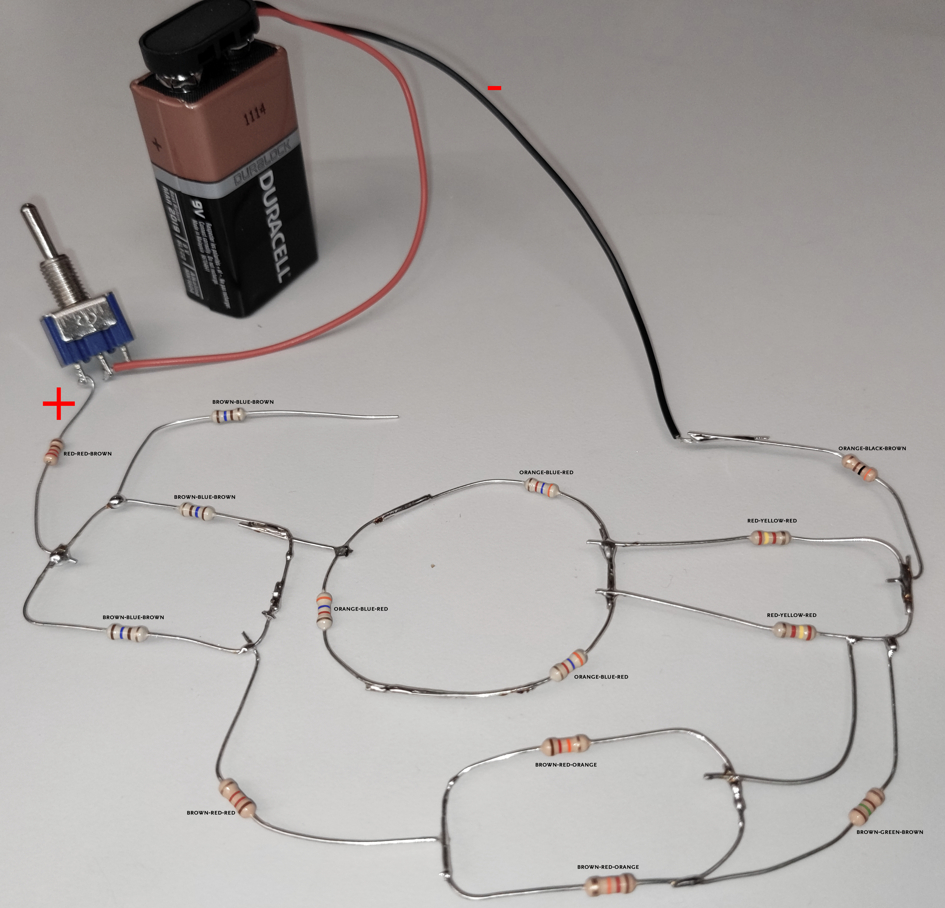 battery, a switch and fourteen resistors. If you are not familiar with the