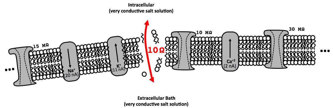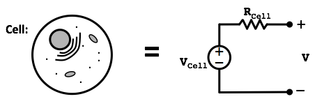 As mentioned in lecture, circuits are used not just to model...circuits, but also many things in life. For example, almost all living cells maintain an internal voltage with respect to their surroundings and can therefore be modeled with Thévenin equivalent circuits: